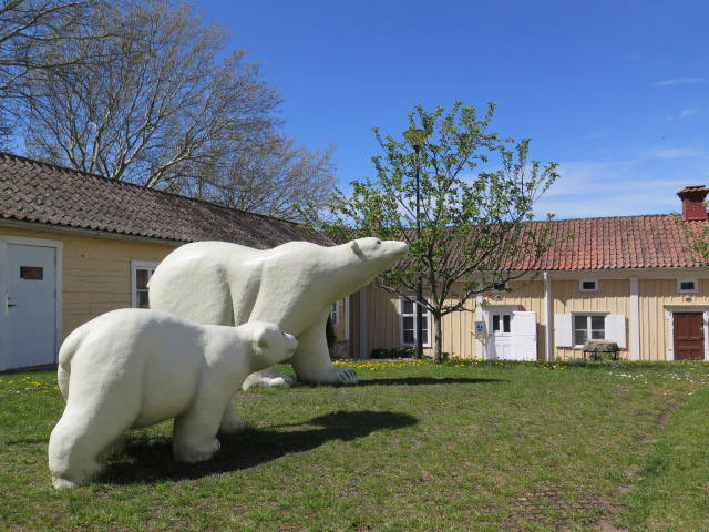 Cette Maman et son ourson cherchent leur banquise; décor peut-être prémonitoire de notre réchauffement climatique devant le musée du charmant petit village de Grånna consacré aux expéditions polaires